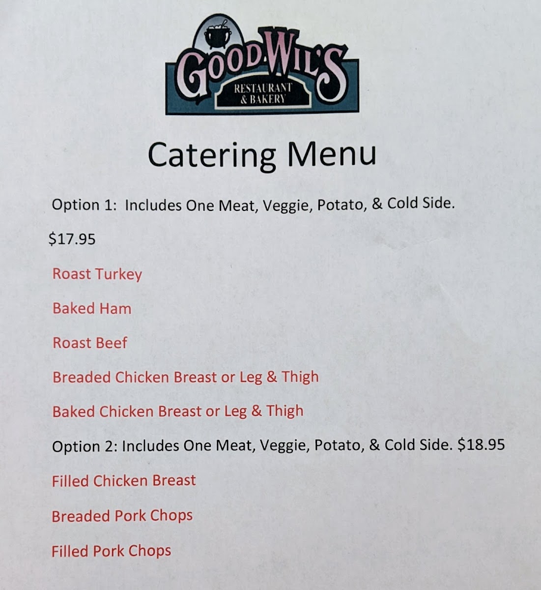 Good Wil's Restaurant & Bakery Menu